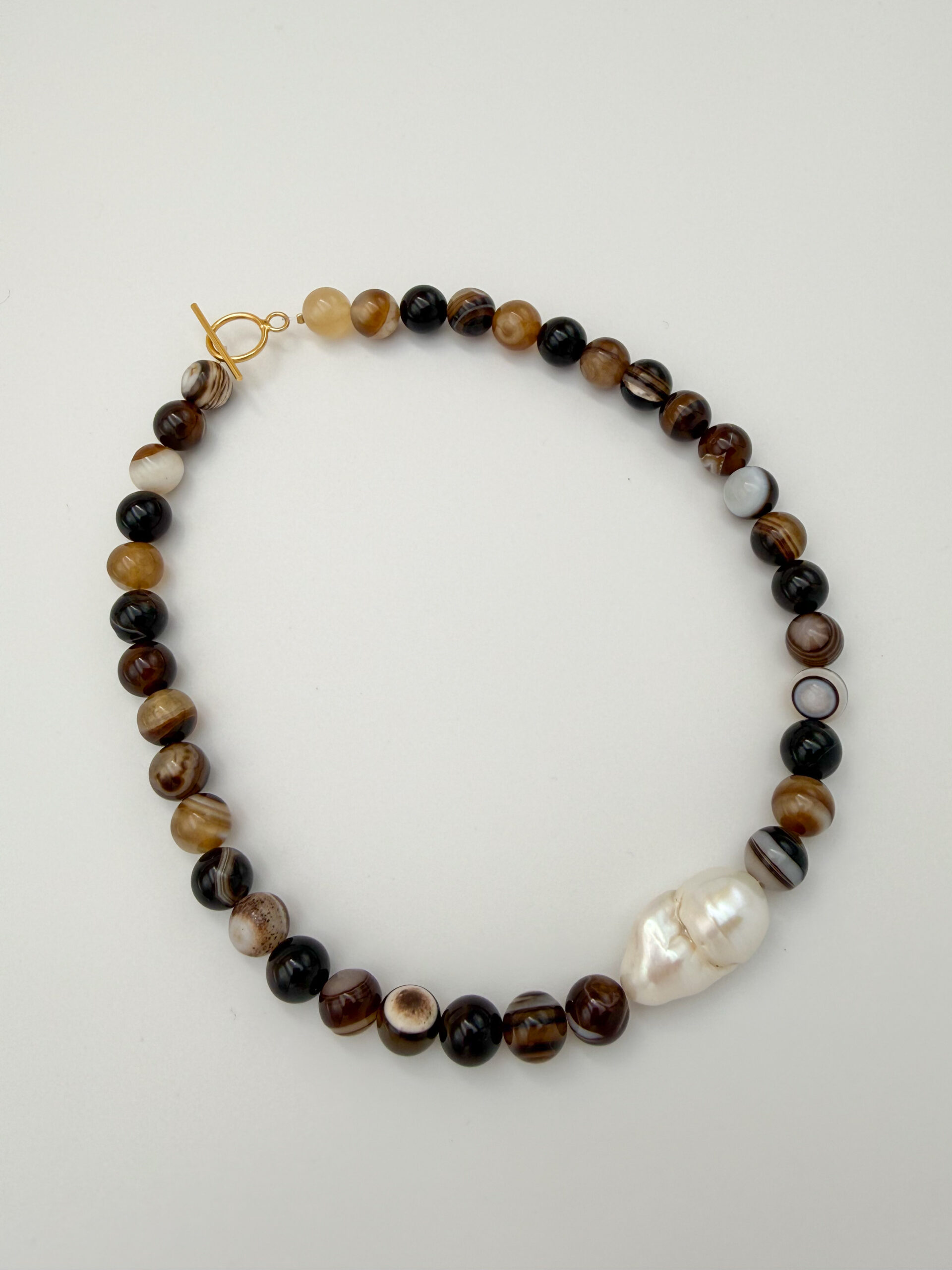 NASZYJNIK CHOKER BAROKOWA PERŁA & BRĄZOWY AGAT