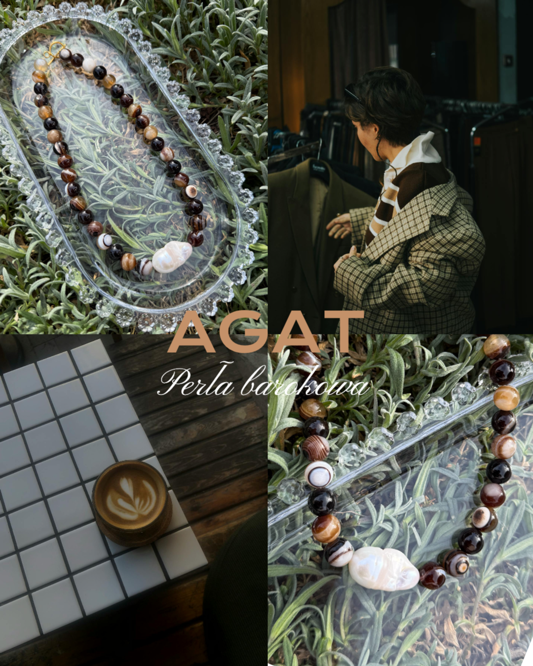 Ten ręcznie wykonany naszyjnik z barokową perłą i agatem będzie wyjątkowym dodatkiem do stylizacji oraz eleganckim prezentem dla miłośników naturalnej biżuterii.