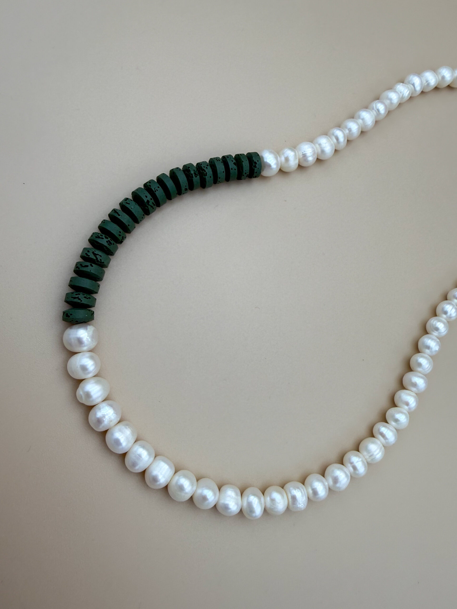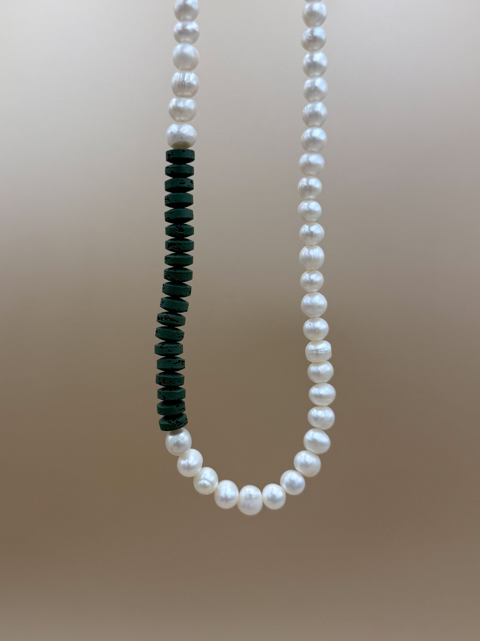 Naszyjnik unisex z dużych pereł słodkowodnych i lawy wulkanicznej – wyraziste połączenie natury i nowoczesnego stylu.